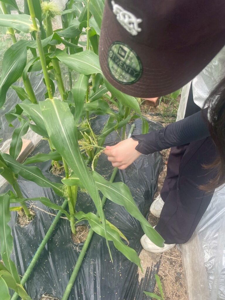 今回は、初めてとうもろこしの人工授粉を行いました‼