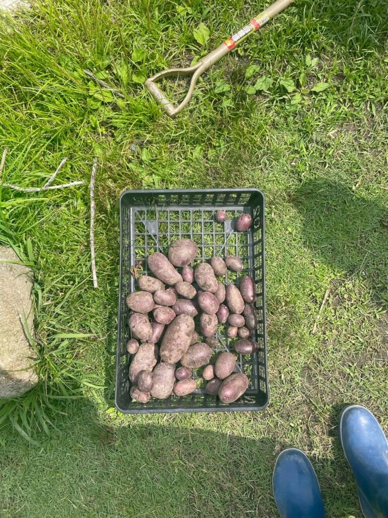 前回に続き、タワラマゼランの収穫を行いました。じゃがいもは一株に10個くらい付いていて掘り起こせば掘り起こすほどいっぱい出てくるので、宝さがしみたい☆